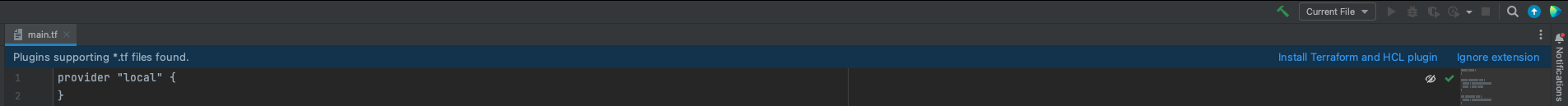 먼저 IntelliJ IDEA 에서 terraform workspace 를 Open 한다. 테라폼 플러그인이 없어 main.tf 파일의 아이콘이 기본 파일 아이콘인 것을 볼 수 있다.