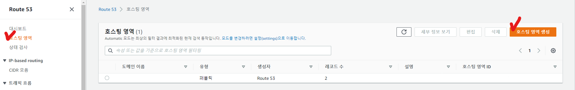 이제 기존 기관에서 필요한 사항은 모두 처리되었으니, AWS Route53 콘솔로 진입한다.