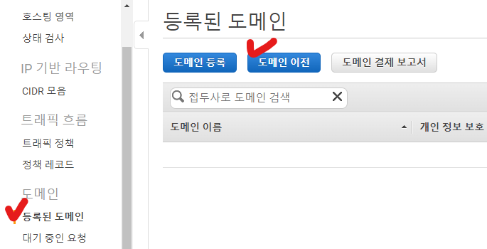 AWS Route53 에서 도메인 이전 기능이 신규 콘솔에서는 지원되지 않으니 (필자가 잘못 알고 있을 수 있음) 이전 콘솔로 전환하여 진행하시길 권장한다.