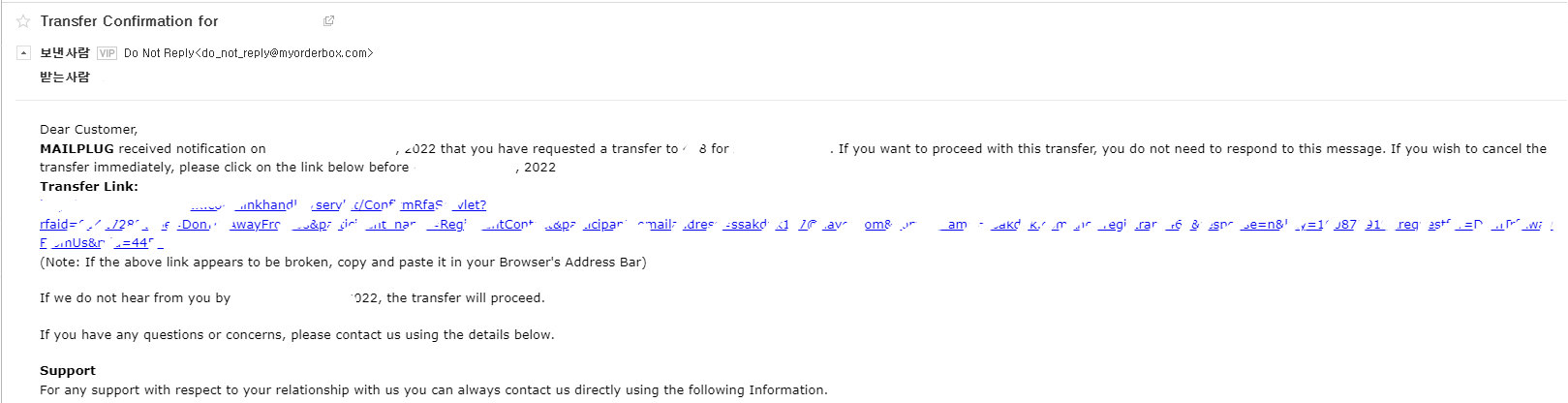 이후 잠시 뒤, 특정 도메인에 대한 이전 접수가 완료되었고, 아무런 조치도 취하지 않을 경우 5일 뒤 자동으로 도메인이 이전된다는 내용을 담은 메일이 도착할 것이다. 이 정책은 도메인 기관마다 다르지만, 대부분 기존 도메인 기관에서 승인해 주거나, 아니면 이렇게 5일 뒤 자동으로 이전된다.