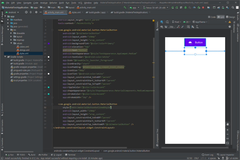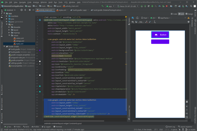 xml 코드에서 MaterialButton 아래에 새로운 버튼을 추가해 보자.