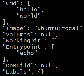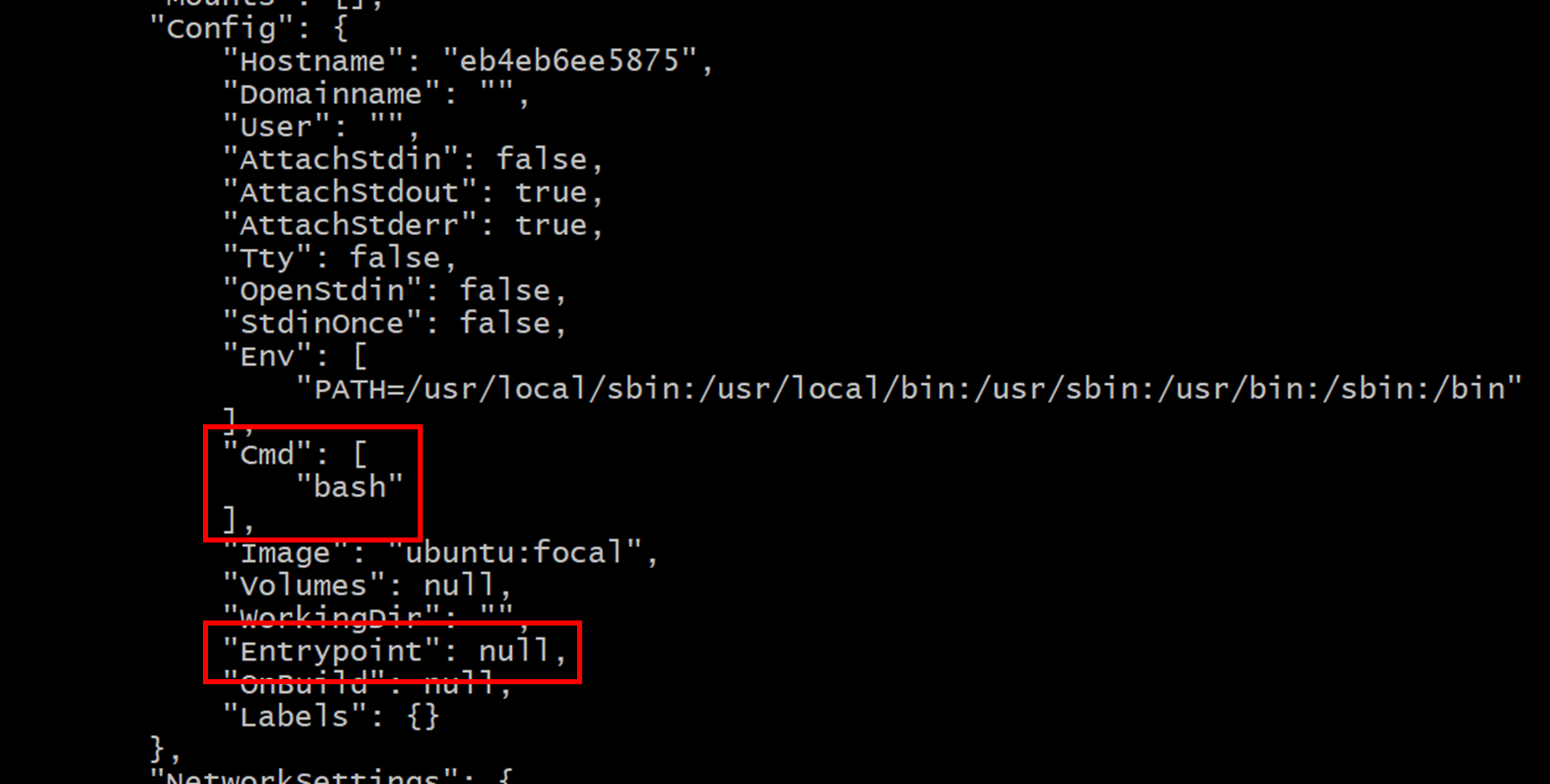 Cmd (Command) 가 "bash" 이고 Entrypoint 가 null 인 것을 확인할 수 있다.