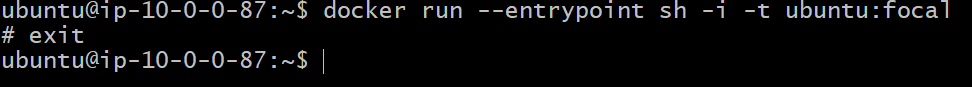 # entrypoint를 sh로 변경하여 sh shell 을 실행하도록 변경할 수 있다.