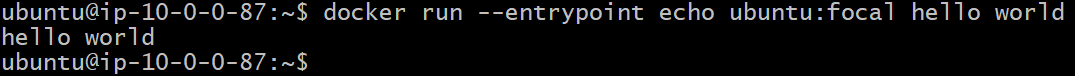 # entrypoint 를 echo 로 변경하여 echo 명령을 실행하도록 변경할 수 있다.