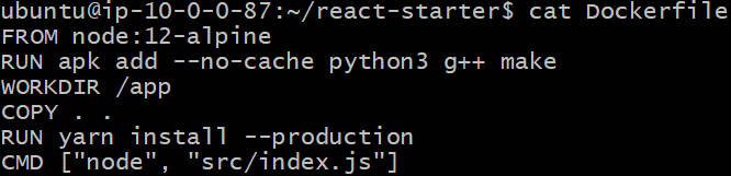 프로젝트를 클론하면 기본 React 프로젝트가 생길 것인데, Root 디렉토리에 다음과 같이 Dockerfile 을 생성한다.