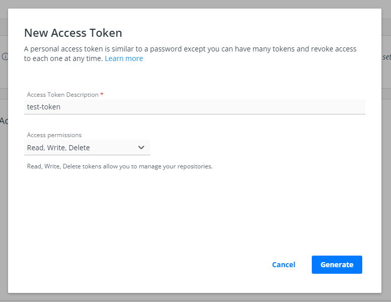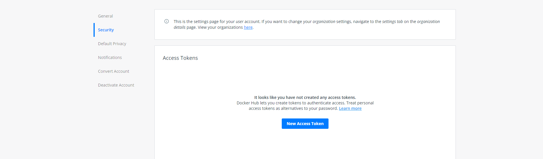 Security 메뉴에 진입하면 Access Token 을 생성할 수 있는데, New Access Token 을 클릭하여 새로운 Access Token 을 생성한다.