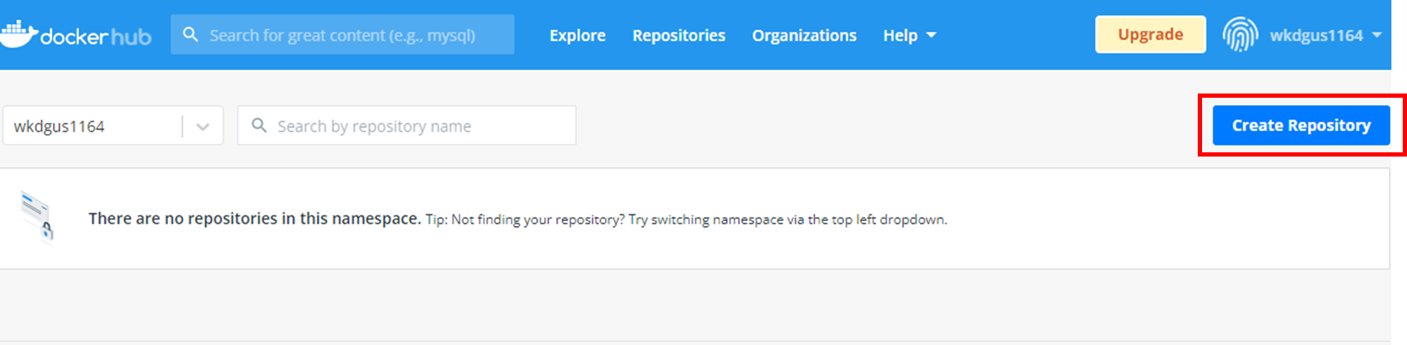 이제 새로운 Repository 를 생성하고 해당 Repository 에 이미지를 업로드해 보자.