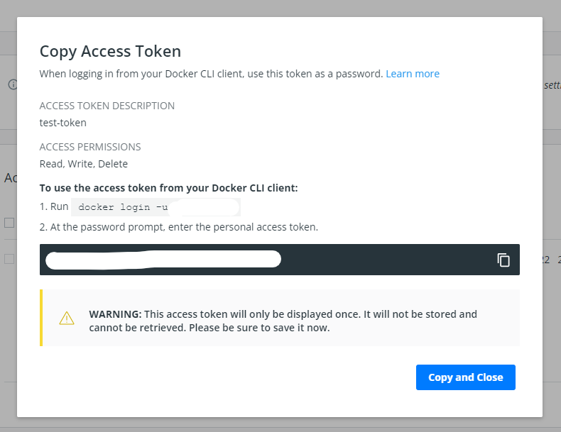 명령어를 입력하면 위와 같이 패스워드를 입력하라는 인풋이 나오는데, 위 가이드 페이지에서 패스워드를 토큰을 복사하여 붙여넣기하면 된다. 붙여넣기해도 보안을 위해 실제 콘솔에는 입력값이 뜨지 않는데, 그냥 엔터를 입력하면 자동으로 검증이 된다.