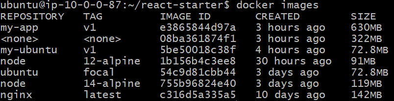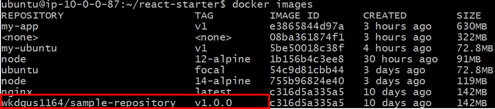 docker images 명령어를 통해 업로드할 이미지의 이름을 확인하고,