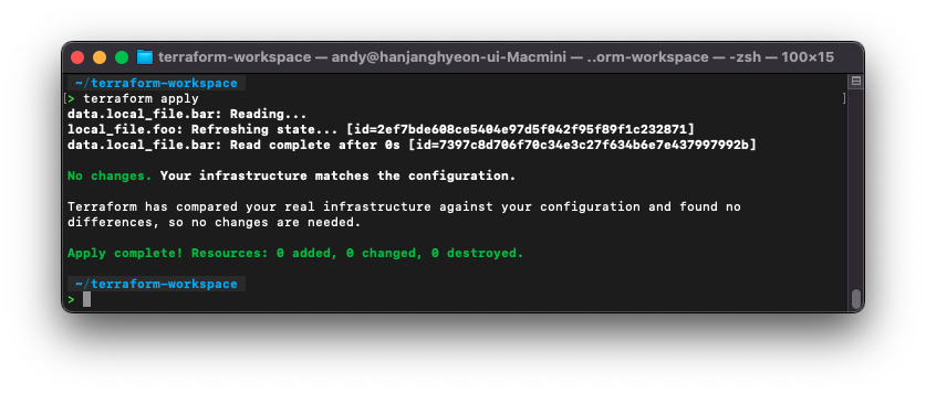 다시 terraform apply 를 수행하면 다음과 같이 output 을 확인할 수 있다.