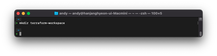 실제로 이번 포스트에서 사용할 워크스페이스를 만들어 보자. 우선 테라폼 프로젝트를 진행할 디렉토리를 생성한다.