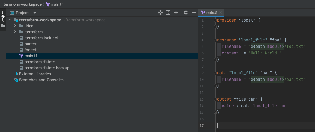 먼저 IntelliJ IDEA 에서 terraform workspace 를 Open 한다. 테라폼 플러그인이 없어 main.tf 파일의 아이콘이 기본 파일 아이콘인 것을 볼 수 있다.