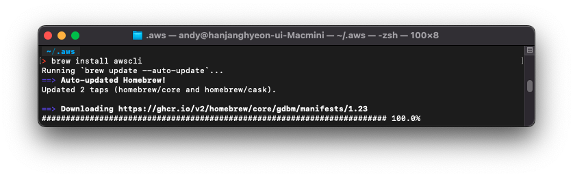 본격적인 세팅을 하기 전에, 다음 명령어를 통해 aws-cli 를 손쉽게 설치할 수 있다.
