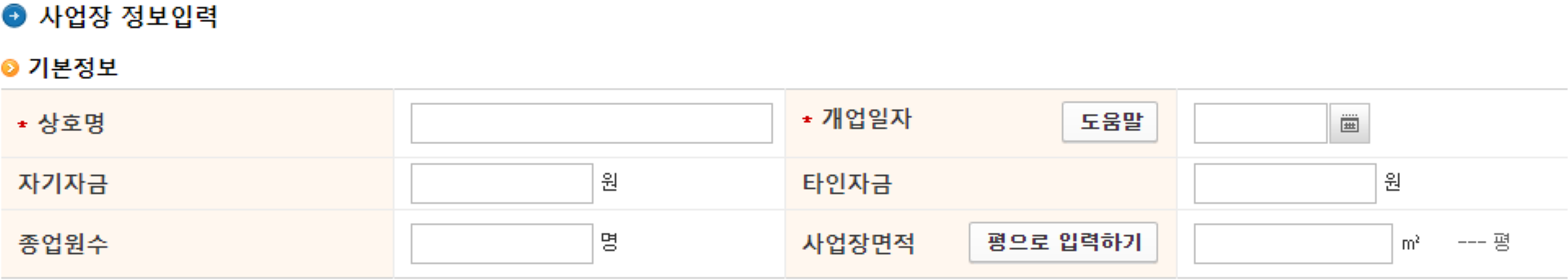 검토 후 다음 버튼을 눌러 페이지를 넘어가면, 이전 화면에서 선택한 사업 특성에 따라 서로 다른 서식이 표시된다. 사업자 등록 시 상황은 모두가 다르므로, 일반적인 부분만 설명하고 넘어간다.