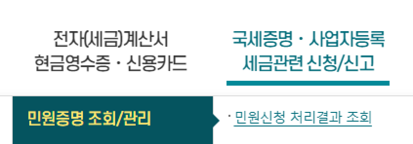 - 각종 증명서 발급 (납세증명, 사업자등록증명, 부가가치세과세표준증명 등)
